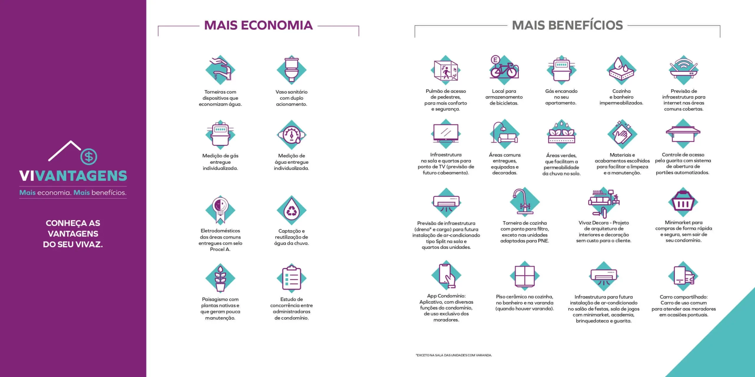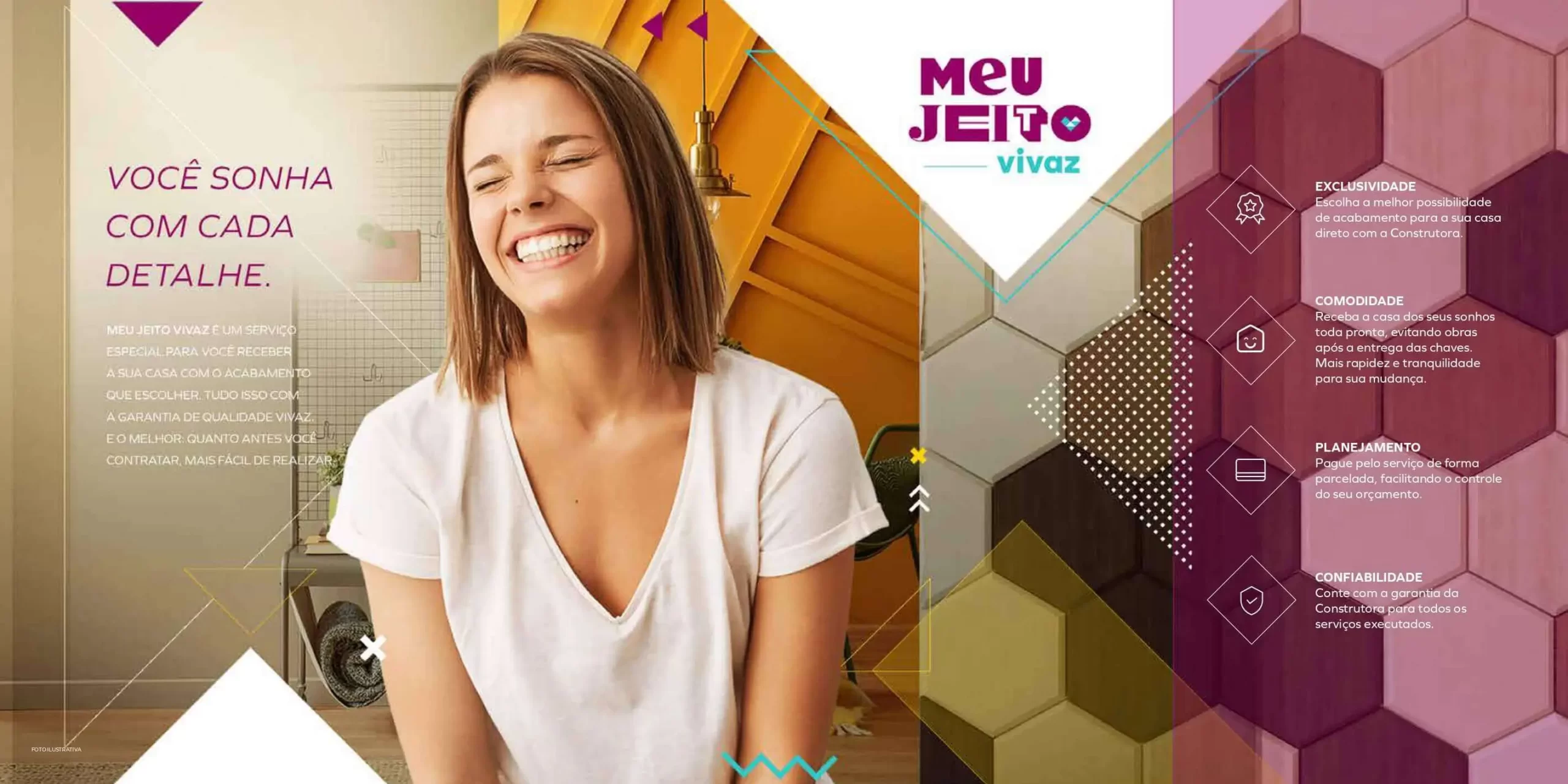 Com vantagens que só a Vivaz proporciona: App Condomínio, trazendo facilidade para a sua rotina; Mini Marketing, comodidade na hora de fazer a suas compras; Carro Compartilhado, um carro exclusivo do condomínio para você usar quando quiser; Meu Jeito Vivaz, um serviço para você receber a sua casa com o acabamento que escolher.